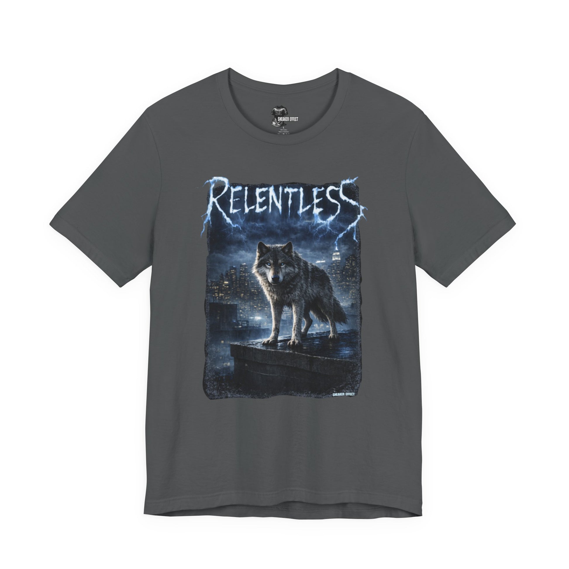 This lightweight crew-neck tee carries a midnight-thrum energy — a lone wolf framed against a storm-split skyline with the word “Relentless” arcing above. The shirt sits cleanly in casual and slightly dressed-up looks, layering easily under a worn denim jacket or standing out on its own. The image feels cinematic and driven: imagine heading out for a late-night ride, a show, or a packed rehearsal, the graphic signaling grit without saying too much. Breathable Airlume cotton keeps you comfortable during long days or restless nights, while the retail fit and neat neckline make it simple to style. It’s built to wear, age, and keep its presence — like the message it carries.