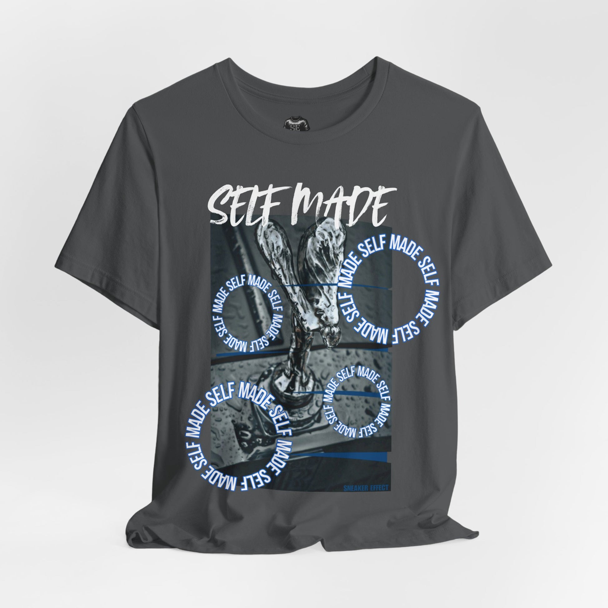 This breathable, lightweight jersey tee carries a confident, urban energy. The charcoal canvas showcases a bold front graphic—dynamic photo elements layered with circular “SELF MADE” motifs and hand-lettered script—so the message reads as both personal statement and street-style art. The retail fit and crew neckline make it easy to layer under jackets or wear solo while keeping a clean silhouette. It’s built to move: soft Airlume combed ring-spun cotton feels gentle against skin and the tear-away label prevents irritation. Thoughtful construction details—side seams for shape retention, ribbed knit collar, and shoulder tape—help the tee hold up through everyday wear. Ethically produced and REACH certified, this shirt suits someone who cares about craft, comfort, and conscious manufacturing.